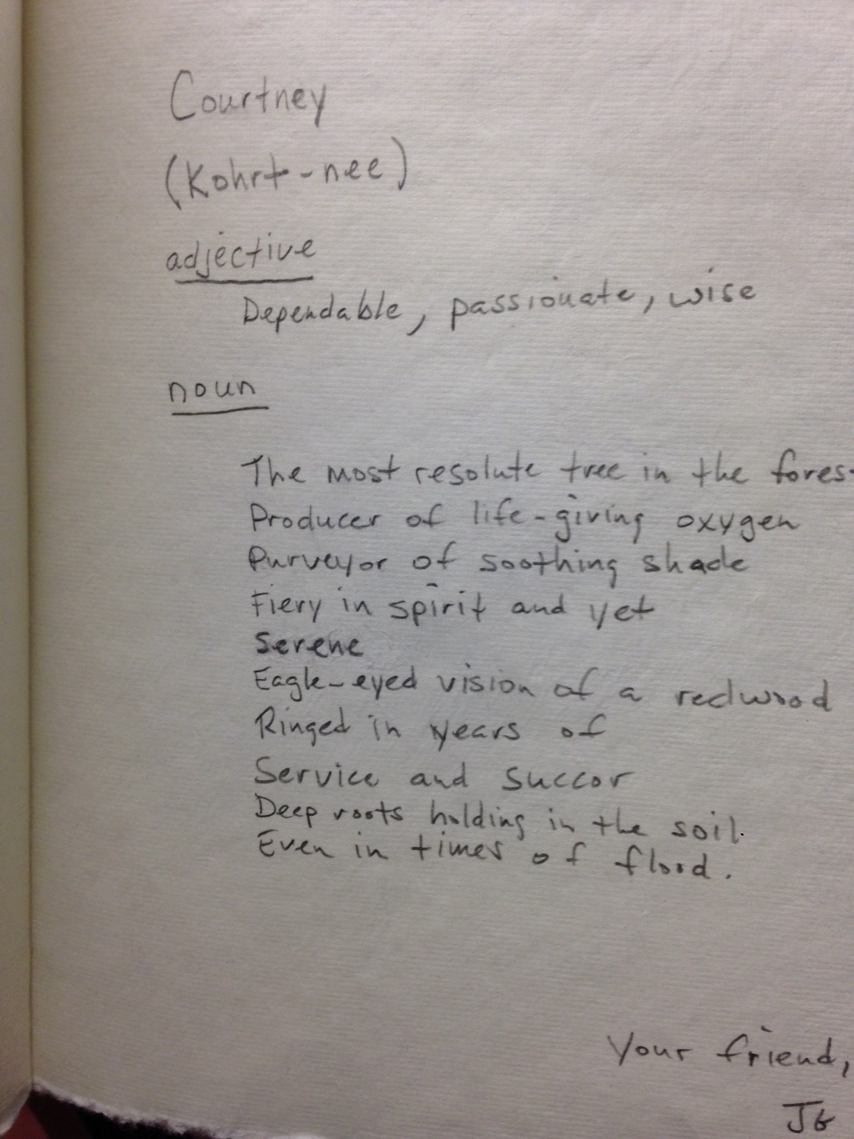 It was, upon reflecting on it, a bit like being at my own memorial service. It was something many people may never get to experience while alive. There were a couple of themes that emerged from both the journal and the things they said.